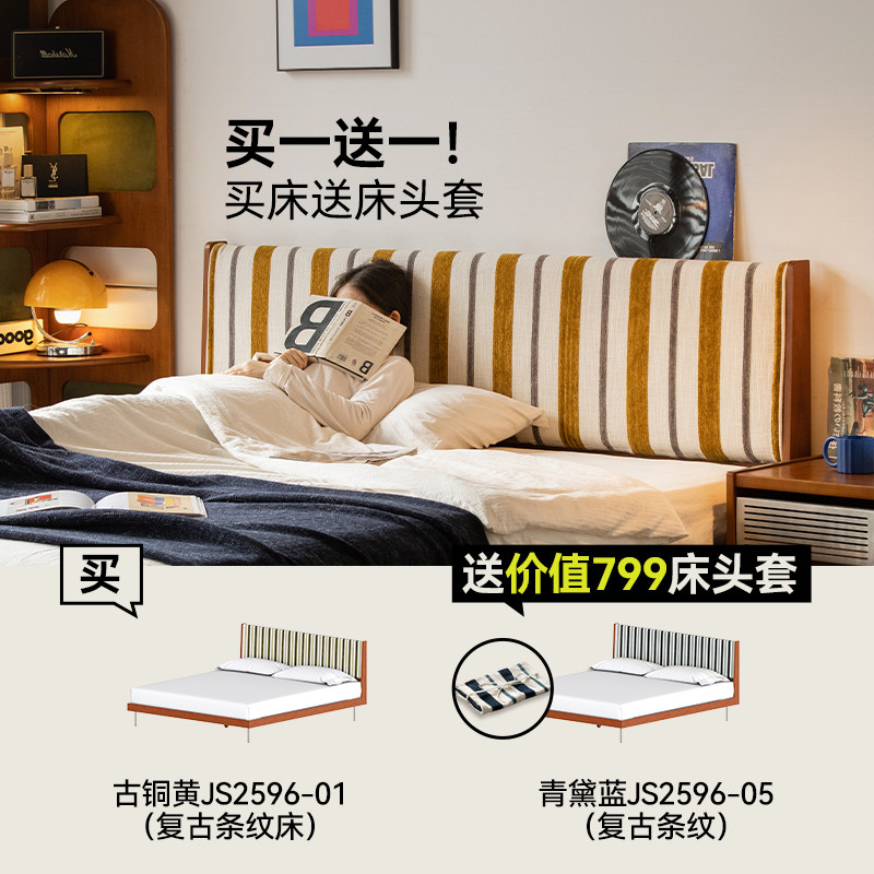 全友家居法式 侧抽储物双人大床 奶油风猫抓布艺床主卧室2025新款