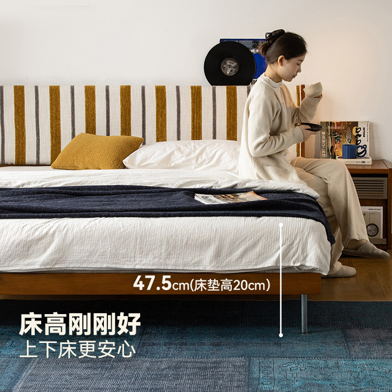 帕沙曼 无床头布艺床奶油风卧室现代简约榻榻米床无靠背床猫抓布