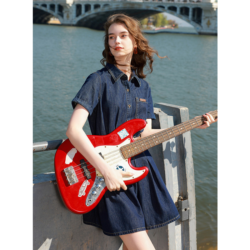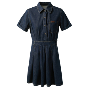 百褶短裙复古M女 牛仔连衣裙纯棉收腰A字裙短袖 三彩2025夏季 新款