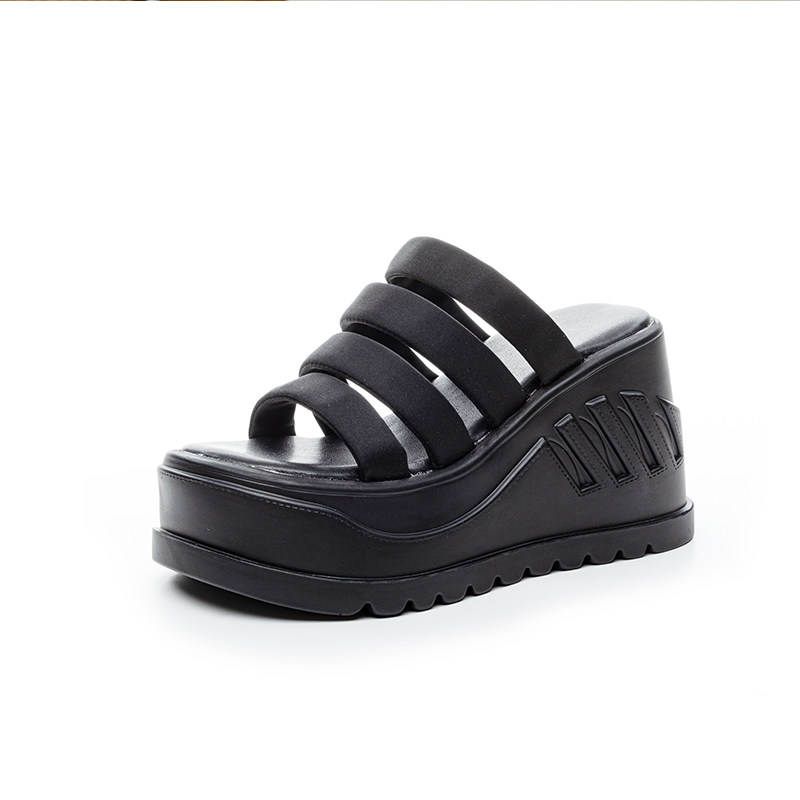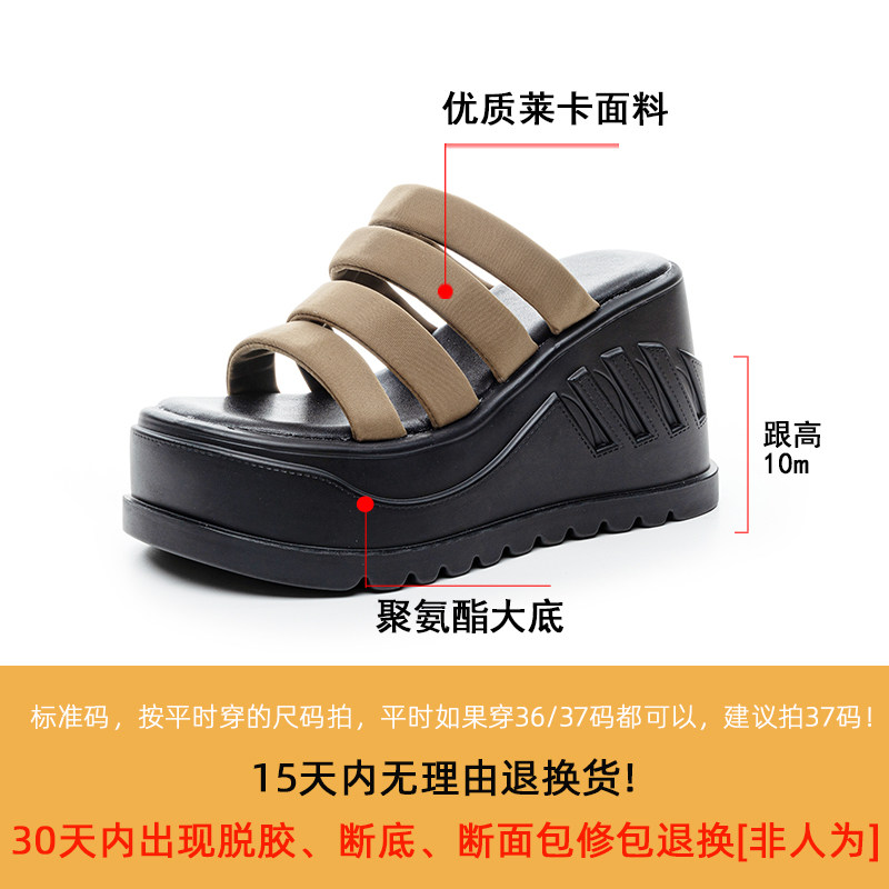 高跟露趾凉拖鞋 坡跟厚底拖鞋 外穿沙滩凉鞋 10cm时尚 女一字型夏新款