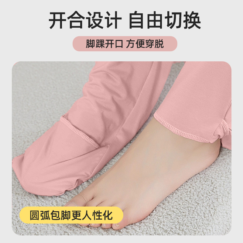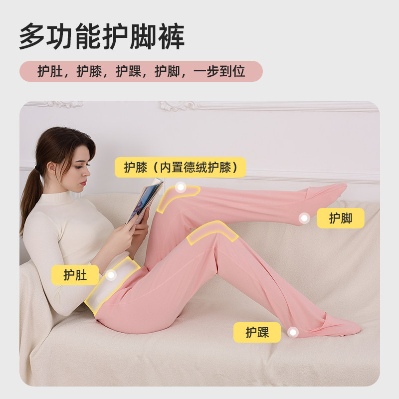 四季 护脚睡裤 秋男女成人护膝连脚体虚防寒长裤 连袜睡裤 纯棉月子裤