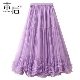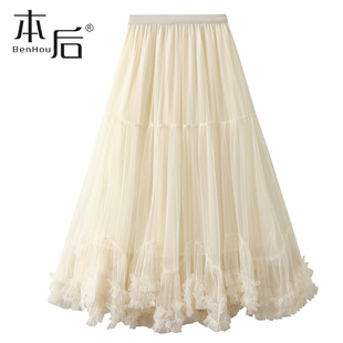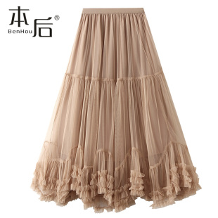 8023 木耳花边a字蛋糕蓬蓬裙 大摆设计感网纱半身裙秋冬女长裙新款