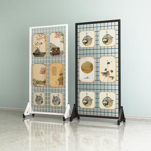 方格网展示架落地移动货架铁丝网学校幼儿园书画展作品饰品展示架