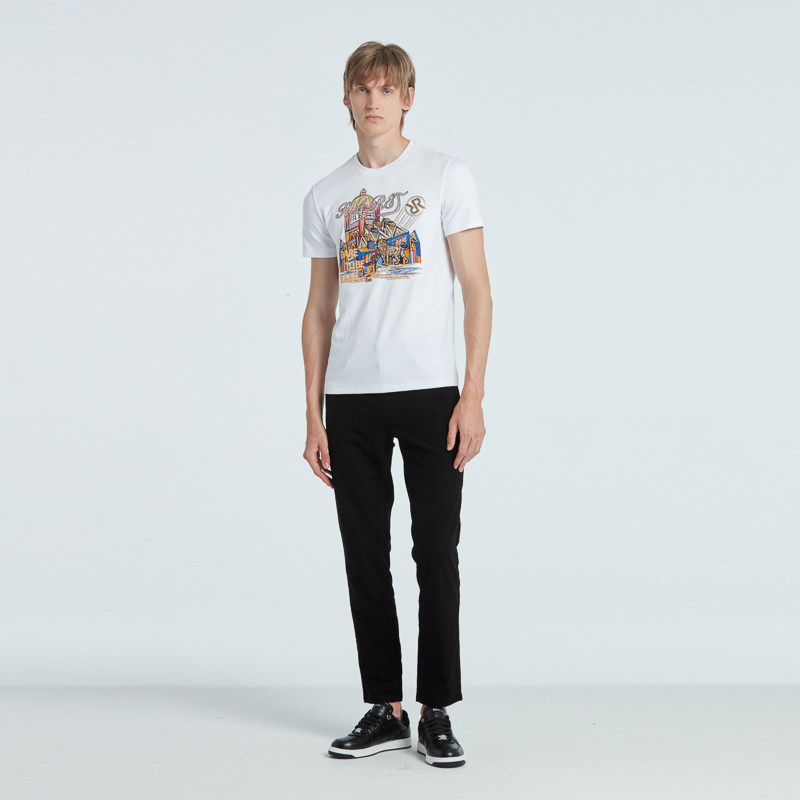 短袖 RARE威雅男装 休闲圆领男士 前胸飞狮白色修身 T恤 秋冬新款
