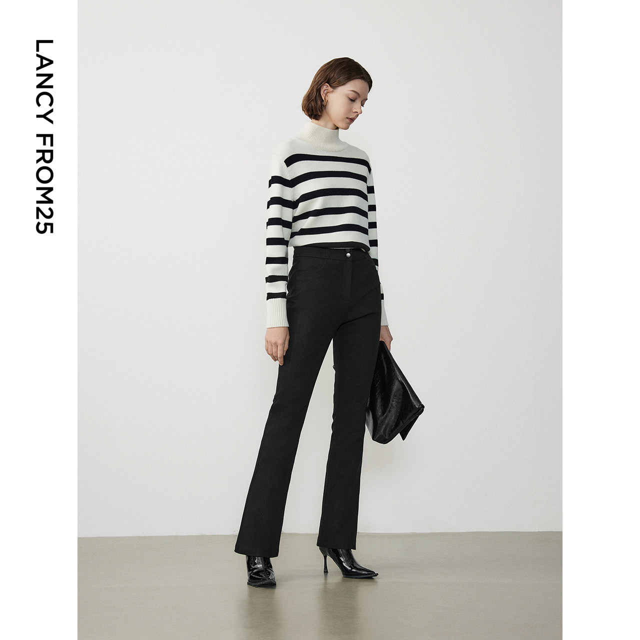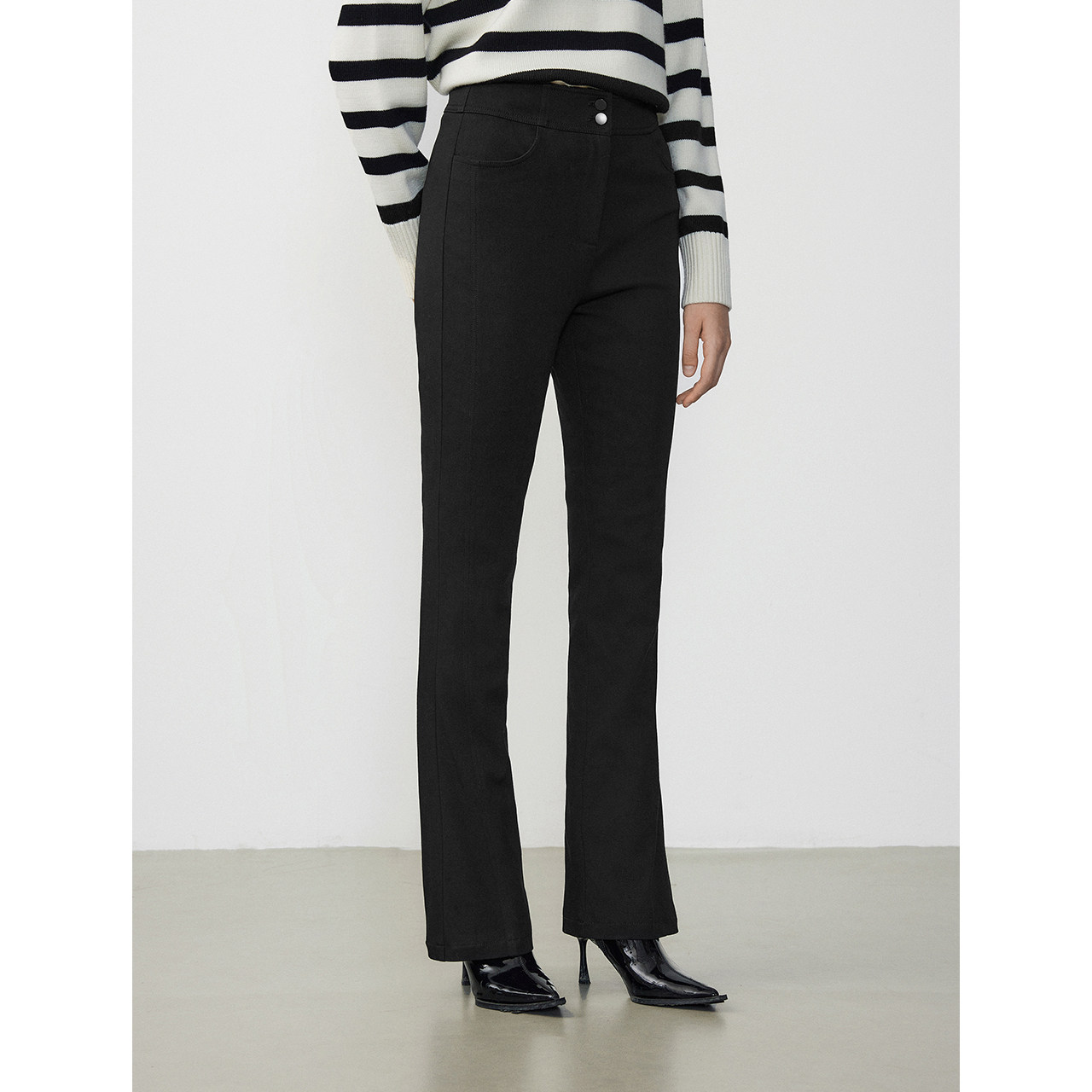 新款 冬季 长裤 朗姿霍尔多巴吉白鹅绒微喇外穿加厚黑色女士羽绒裤