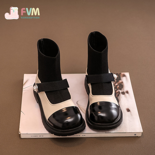女宝宝加绒公主皮靴 秋冬季 女童鞋 子儿童马丁小短靴子袜靴2025新款