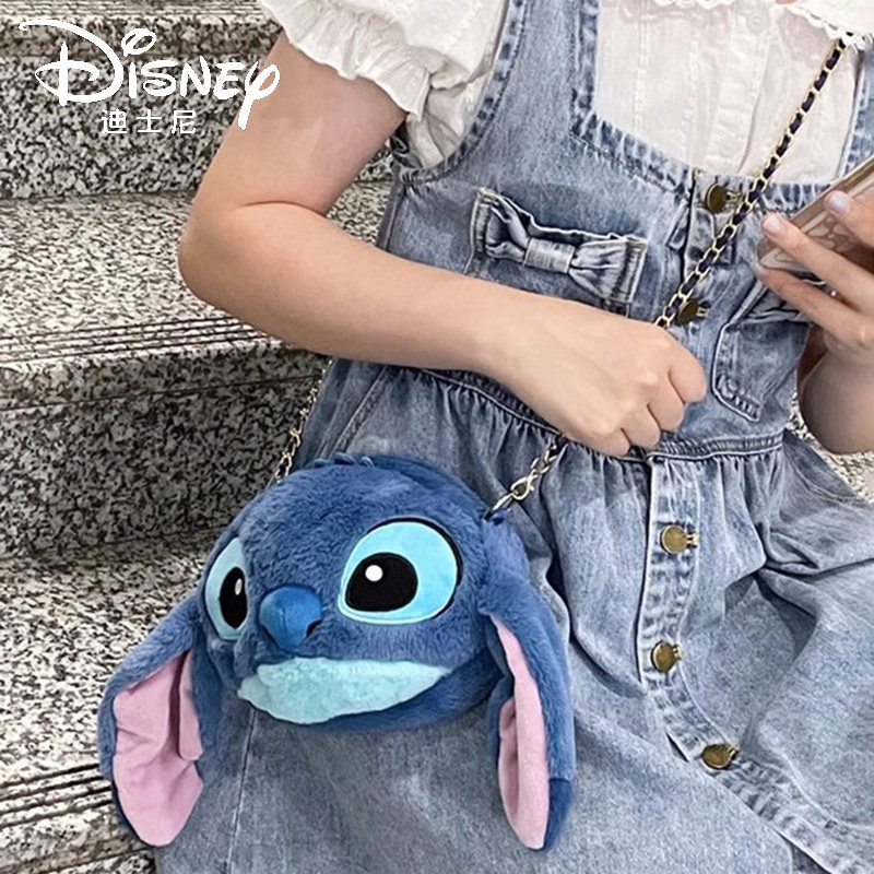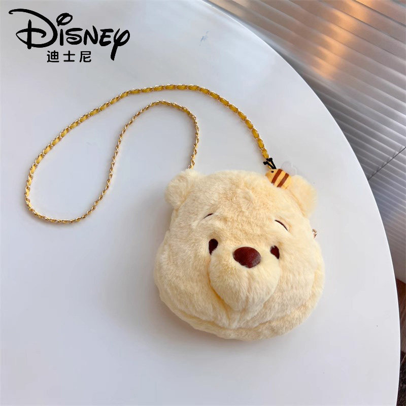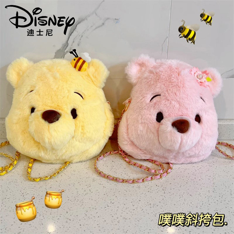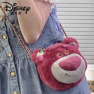 迪士尼正版 草莓熊史迪仔可爱毛绒链条包女斜挎维尼熊单肩玩偶包包