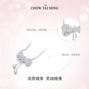 周大生黄18K金项链百搭彩金锁骨颈链水波纹麻绳素链女生新年礼物