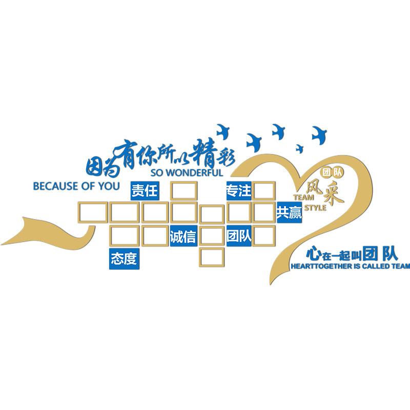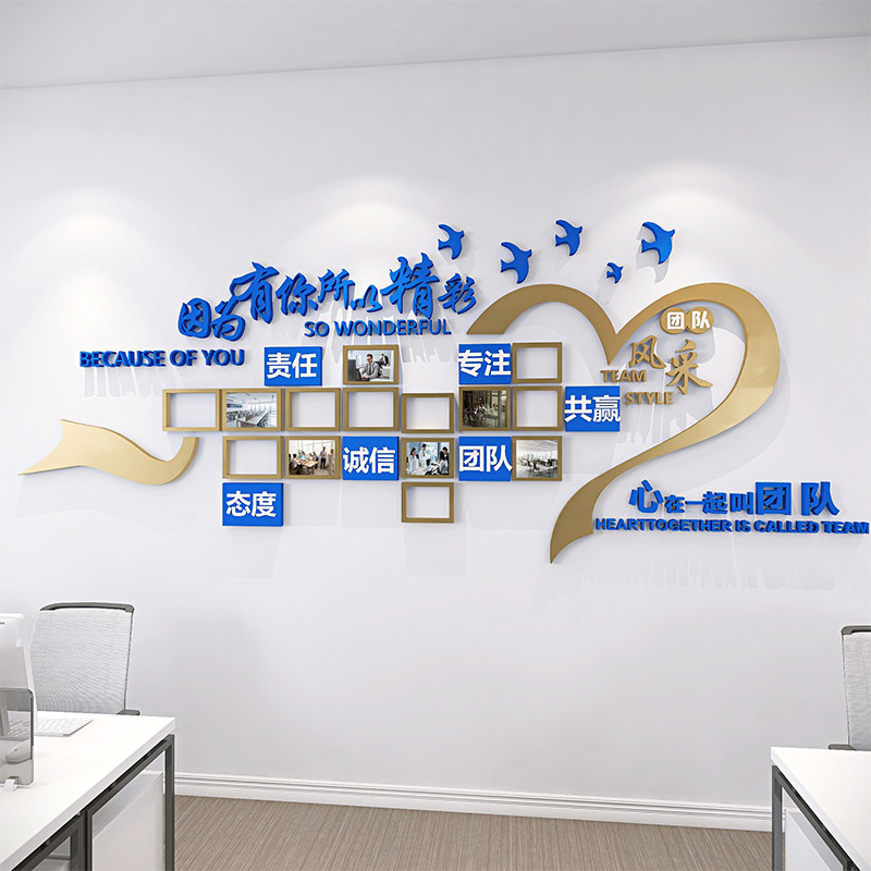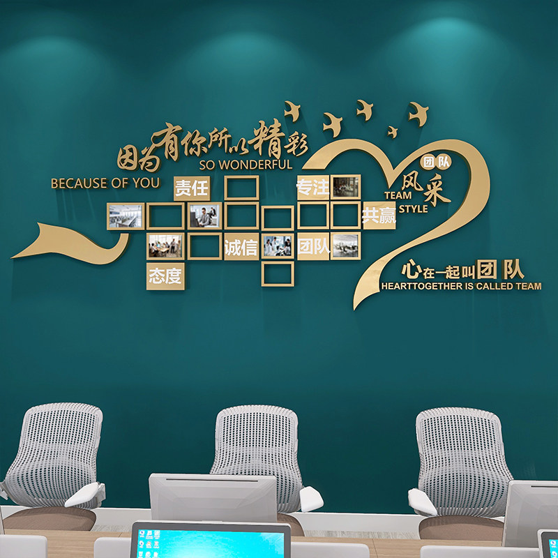 企业文化办公司室墙面装 饰励志员工团队风采荣誉展示照片设计墙贴