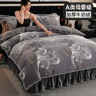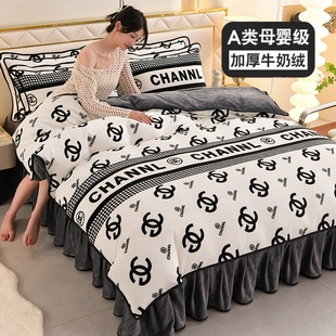 2025新款 加厚牛奶绒四件套床裙加绒毛珊瑚绒双面被套罩法兰绒冬季
