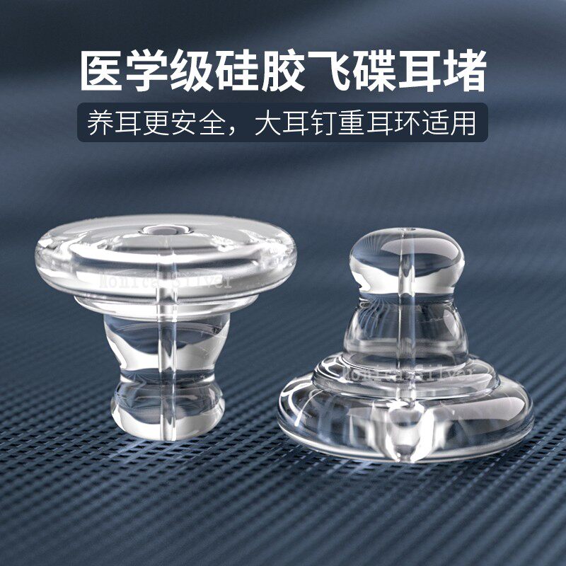 大飞碟耳堵医用硅胶耳钉后塞飞盘耳环塞扣防下坠防外翻不发黄耳帽