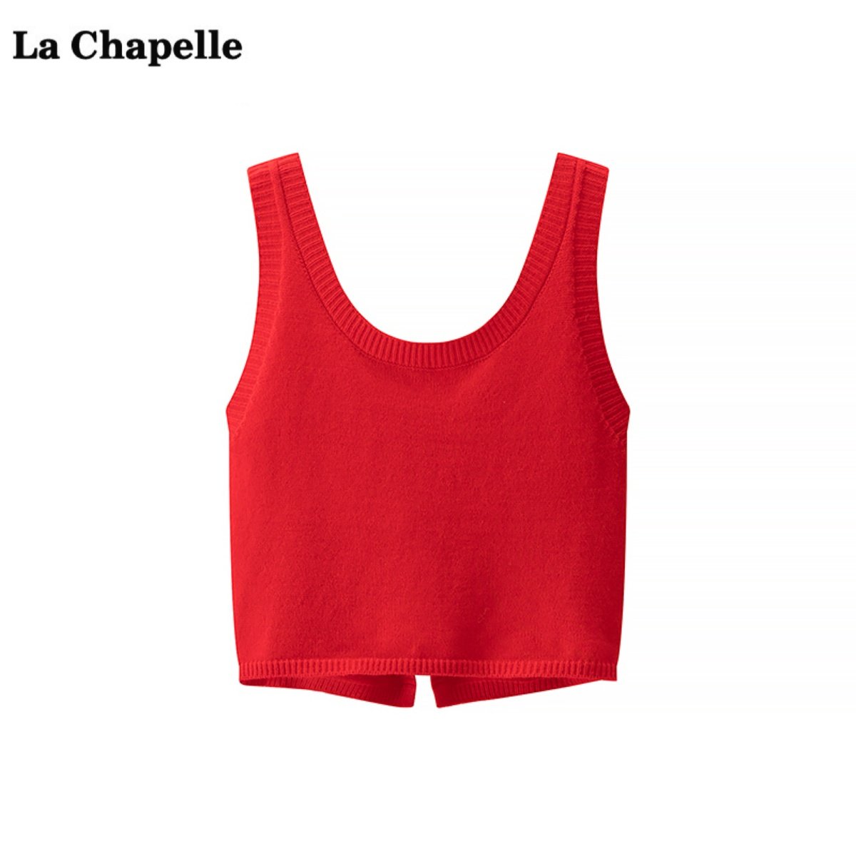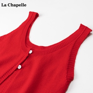 新款 Chapelle红色叠穿针织吊带背心女春季 百搭上衣 拉夏贝尔