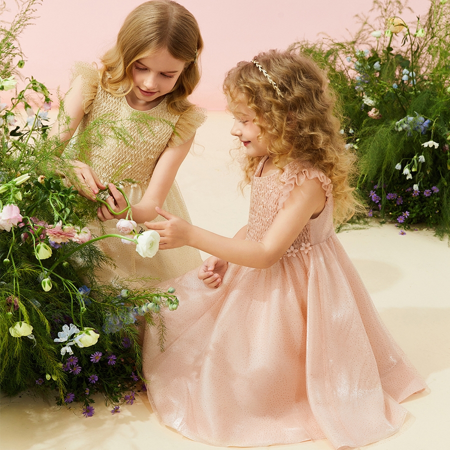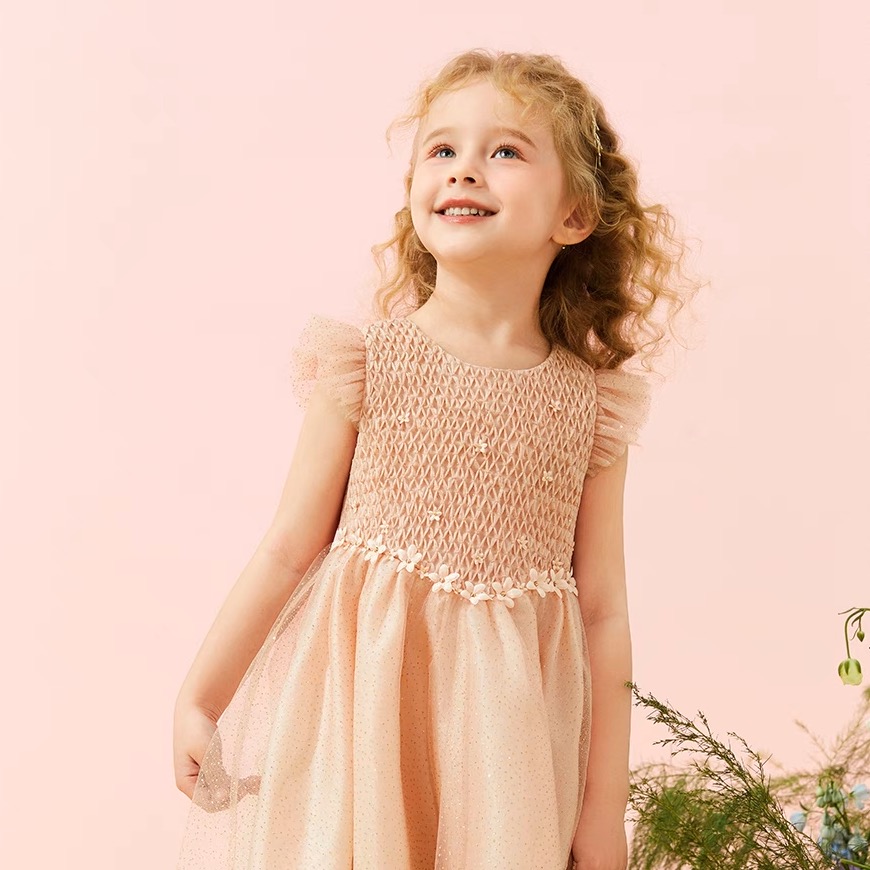 Petite 手工蜂巢褶钉花网纱小公主连衣裙 Marguerite·小雏菊童装