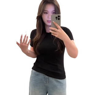 胖妹妹修身 显瘦内搭打底衫 白色正肩短袖 新款 小上衣 t恤女夏季 大码