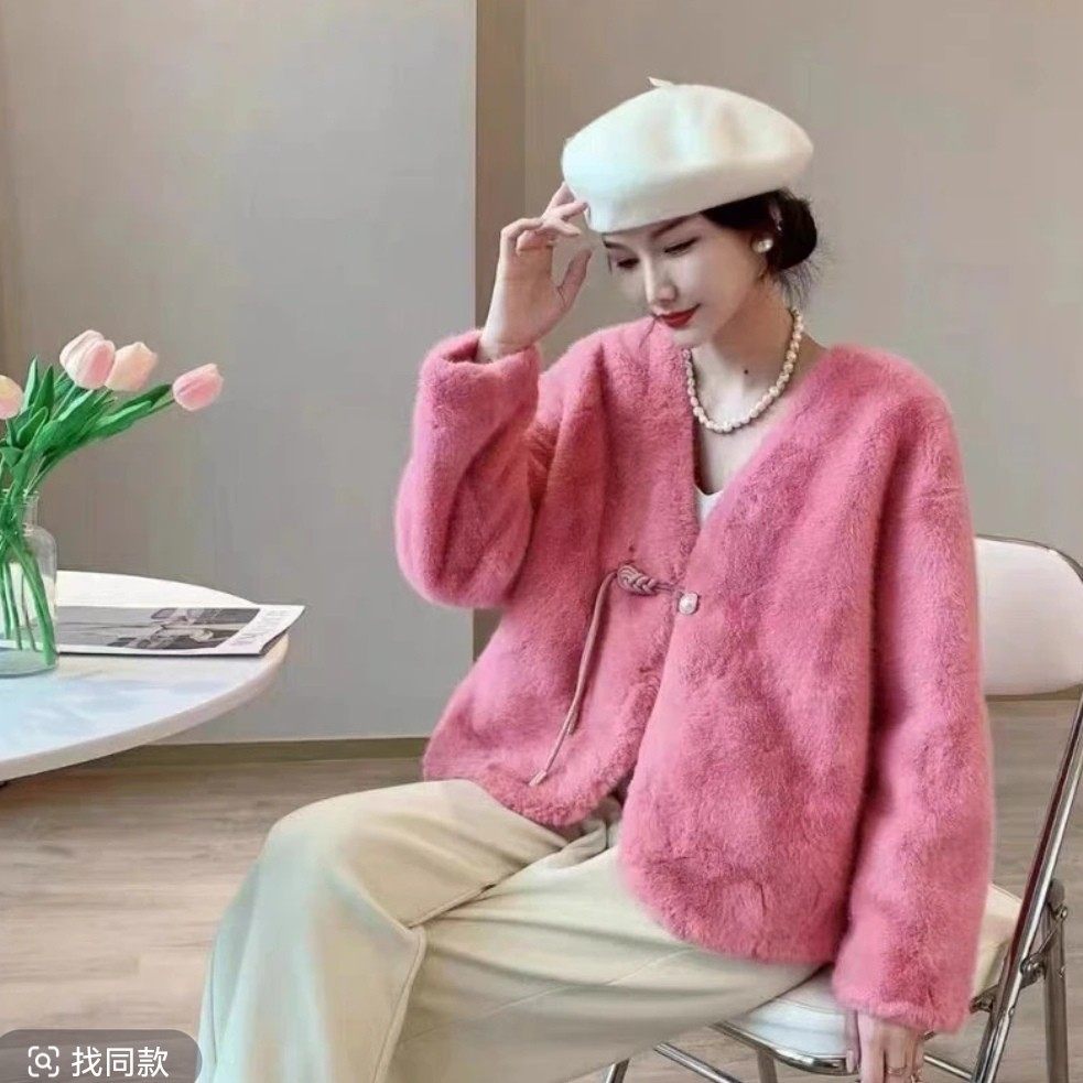 气质百搭V领环A修身 时尚 国风盘扣女款 显瘦大气外套 衣长53