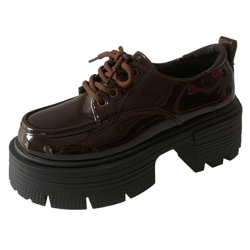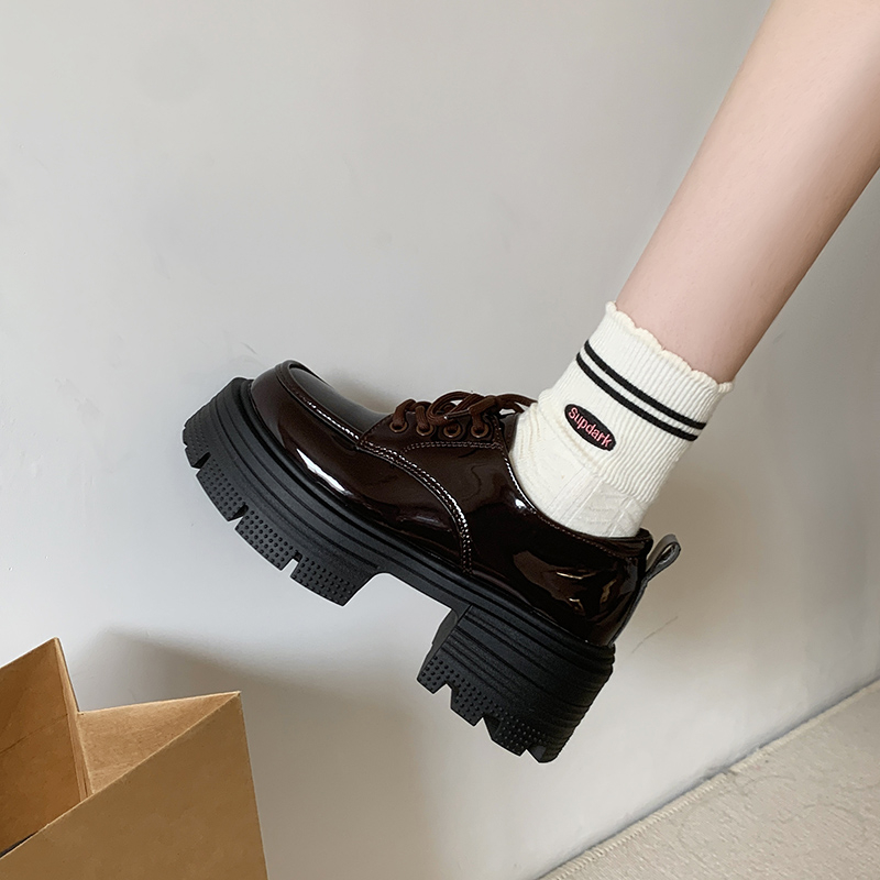 加绒增高厚底深口单鞋 大头系带小皮鞋 女秋冬季 勃肯鞋 2025新款 法式