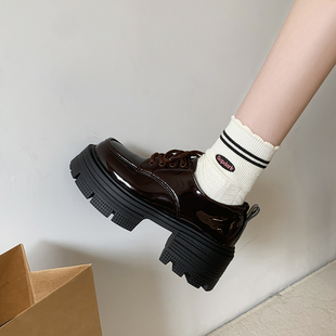 胡连馨同款 皮鞋 千百度厚底真皮乐福鞋 新款 深口单鞋 女2025秋季