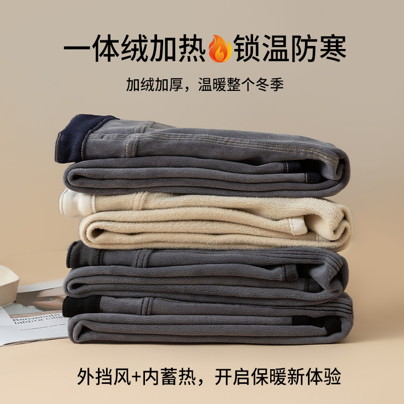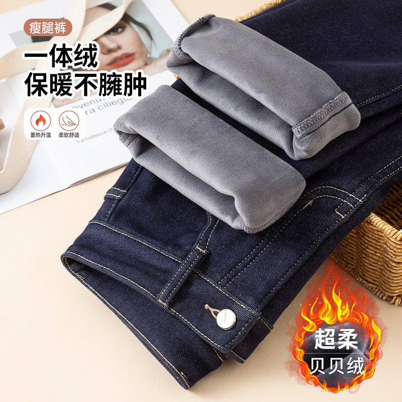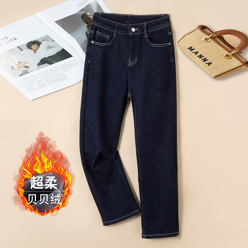 2025春秋加绒深蓝色直筒牛仔裤 女八九分宽松高腰梨形身材显瘦烟管