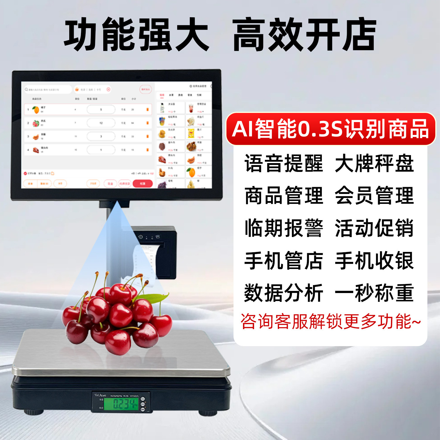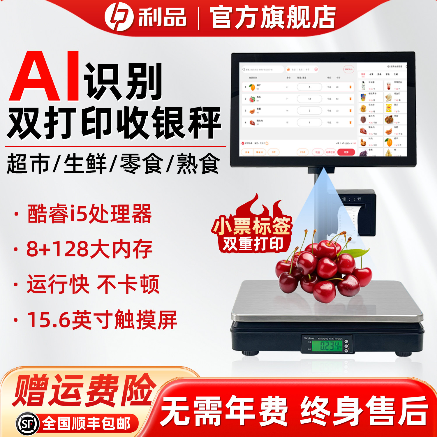 利品N1称重收银一体机i5触摸屏Ai智能收银电子秤生鲜水果卤味熟食零食水产收银机带秤PC称重系统收银秤