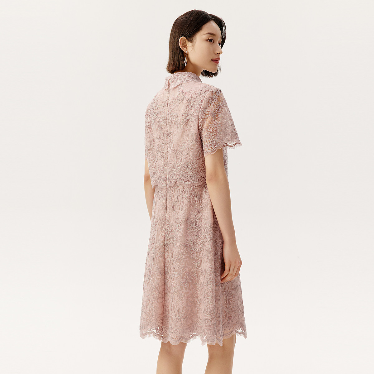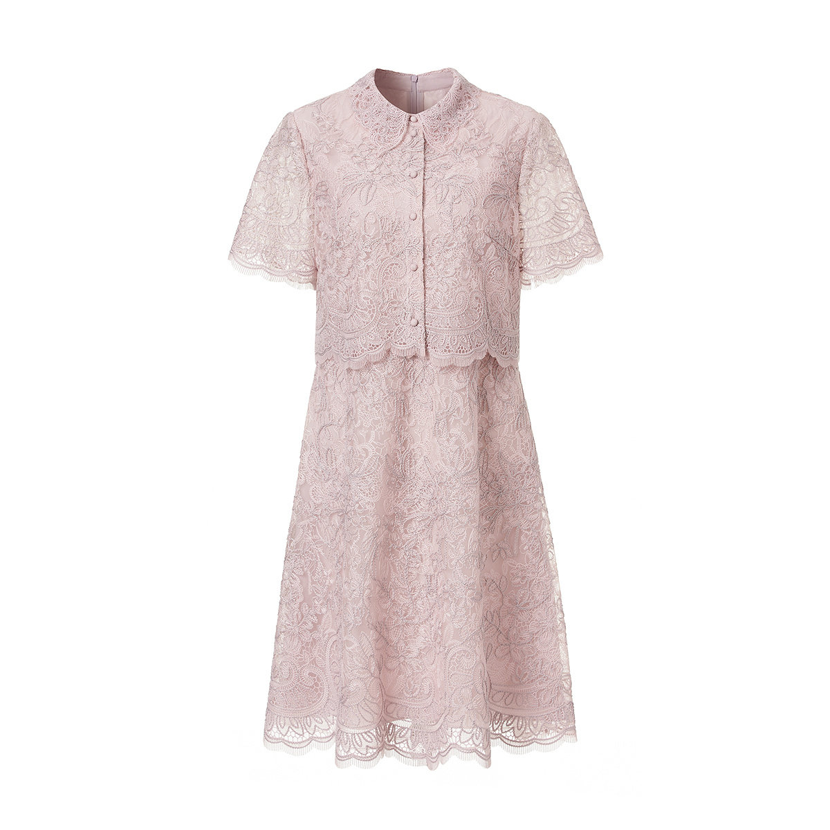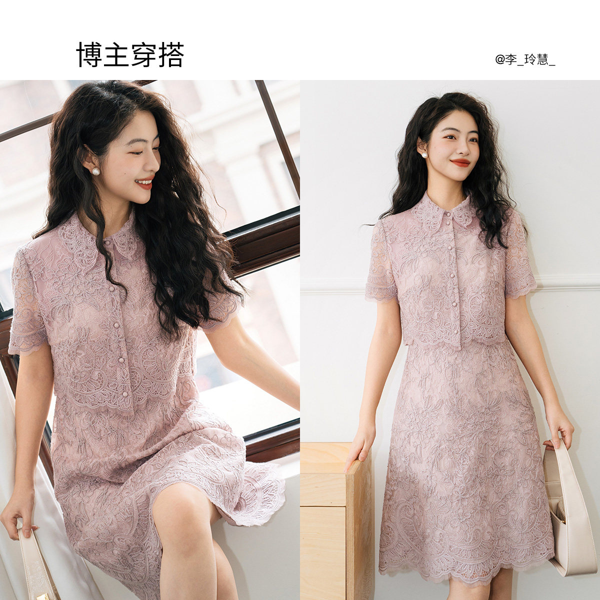 VGRASS维格娜丝轻礼服夏季 全身定位蕾丝刺绣粉色约会假两件连衣裙