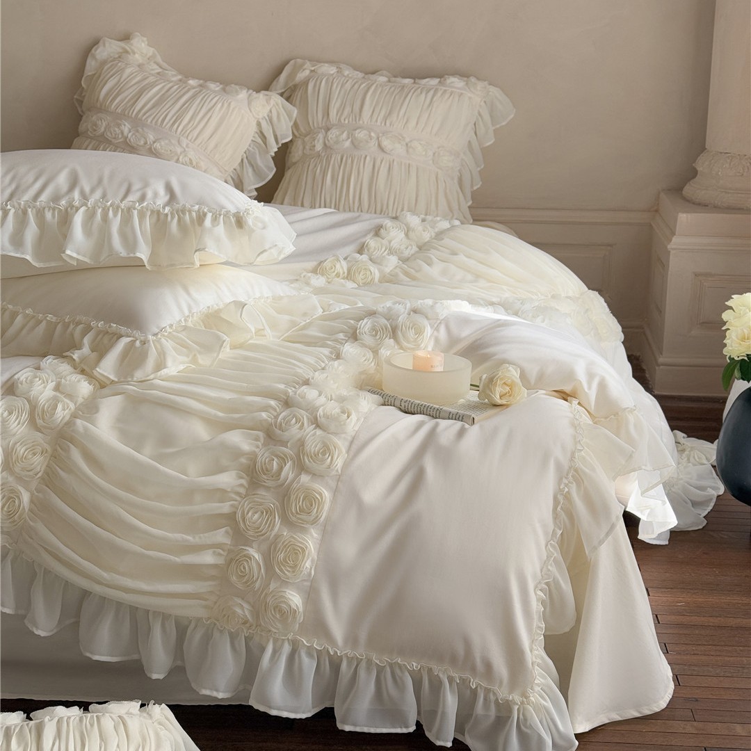 法式 奶油复古风蕾丝花边床单床裙床品家纺全棉水洗棉四件套公主风