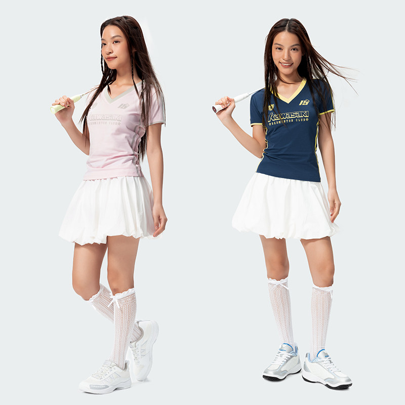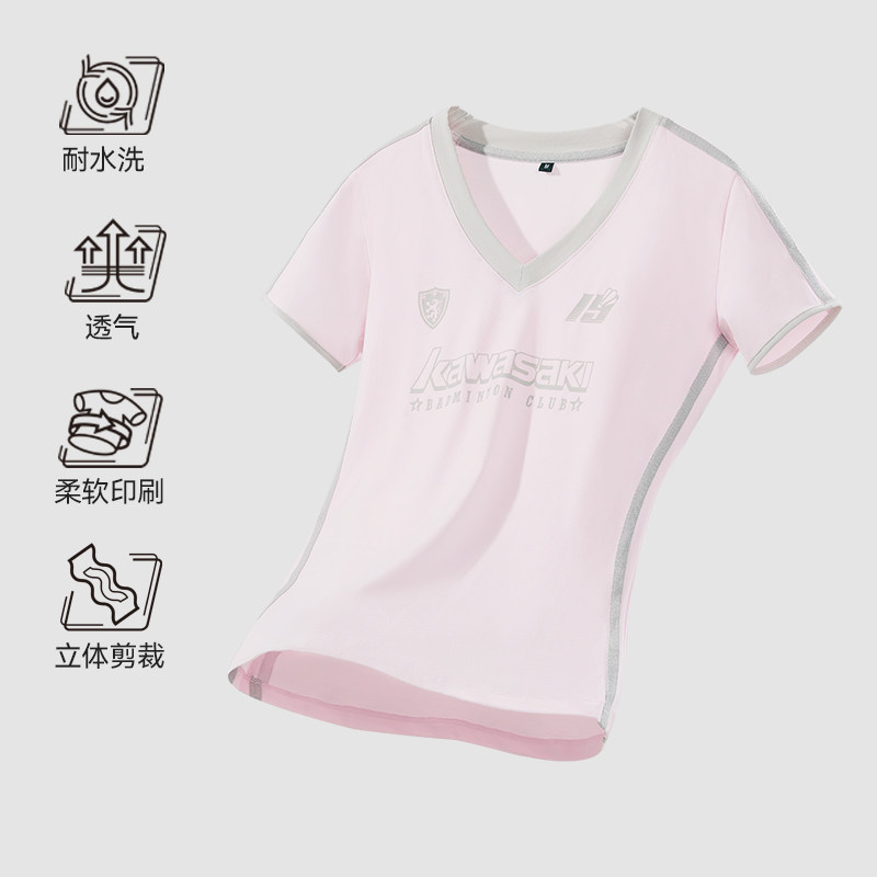川崎运动短袖 轻薄透气T恤复古休闲羽毛球服网球比赛训练服 男女款