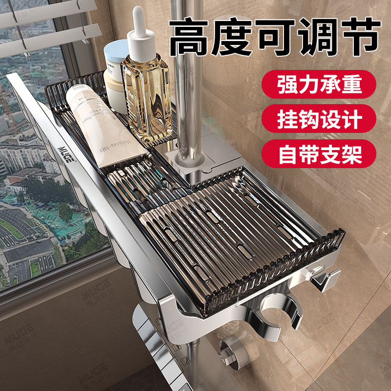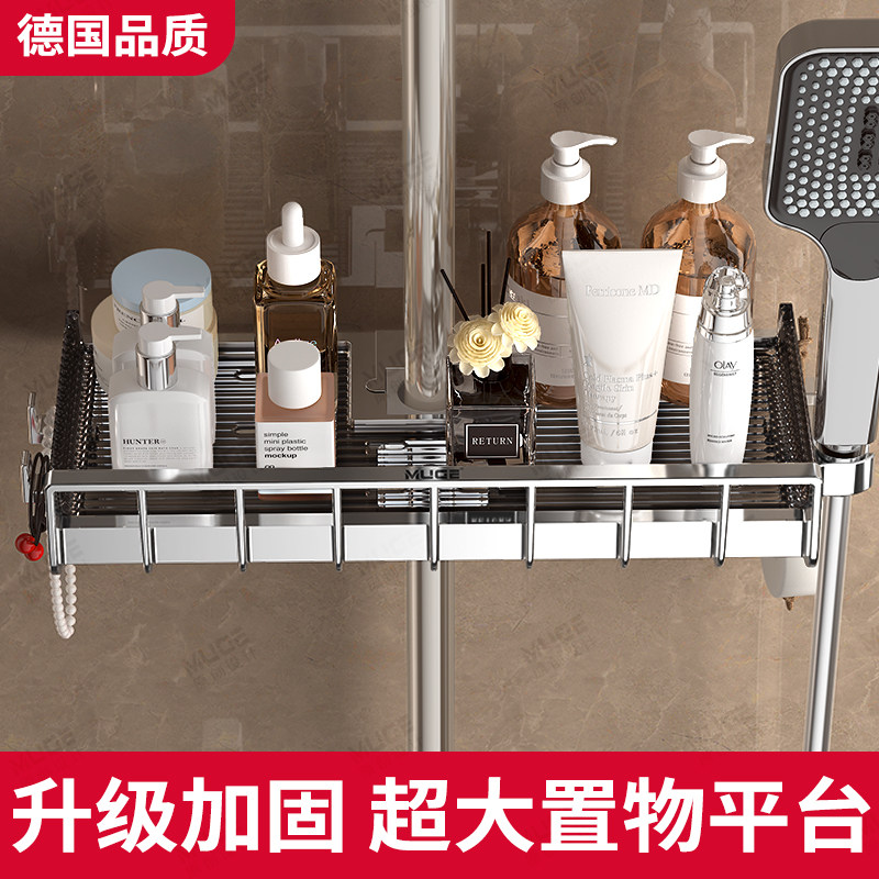 浴室免打孔家用花洒支架托盘置物架淋浴房沐浴露卫生间淋浴杆挂架