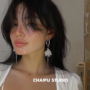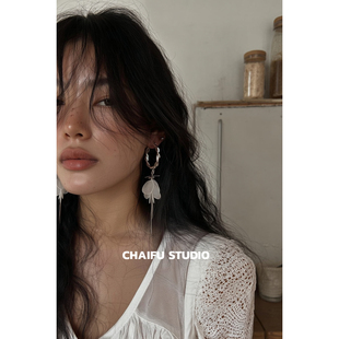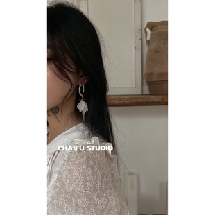 925银针耳饰法式 复古贝壳花朵珍珠C圈耳钉女轻奢小众气质百搭耳环
