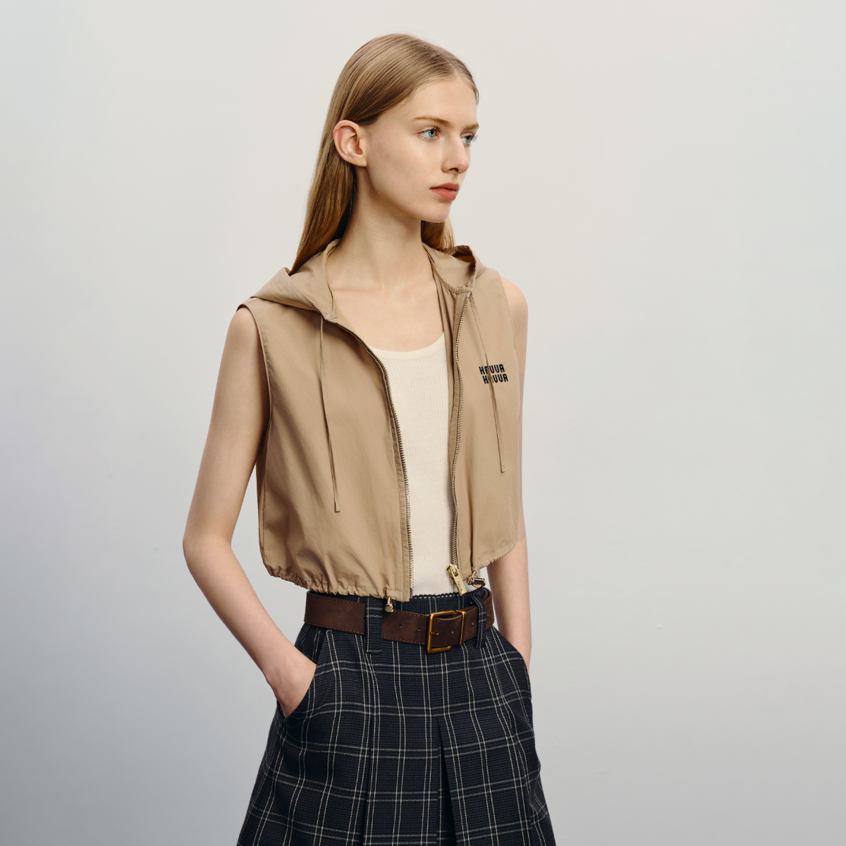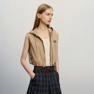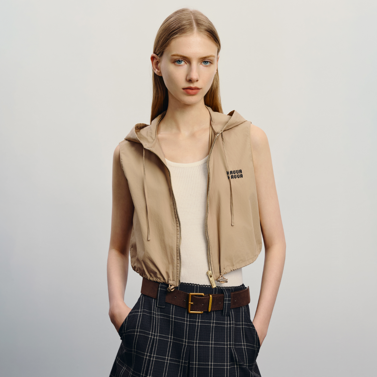 07790 HAVVA叠搭短款 连帽坎肩马夹外套抽绳女背心马甲2025夏季