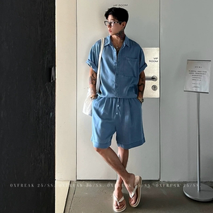 衬衫 男士 休闲运动套装 短裤 时尚 潮流短袖 韩版 薄款 老钱休闲套装 夏季