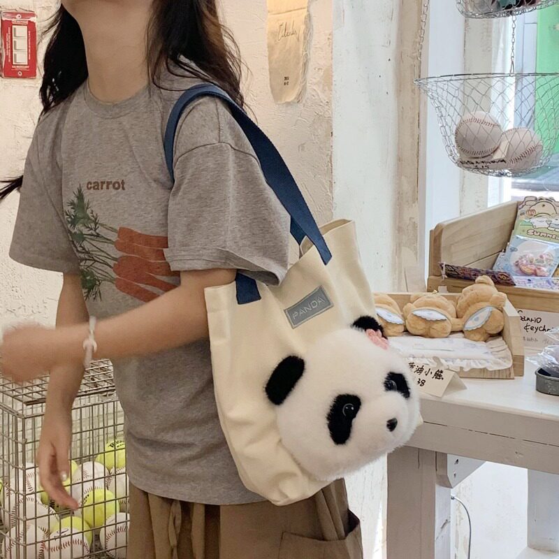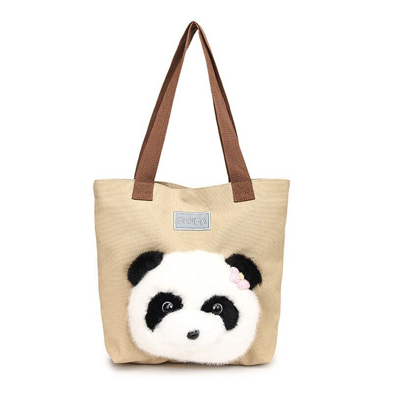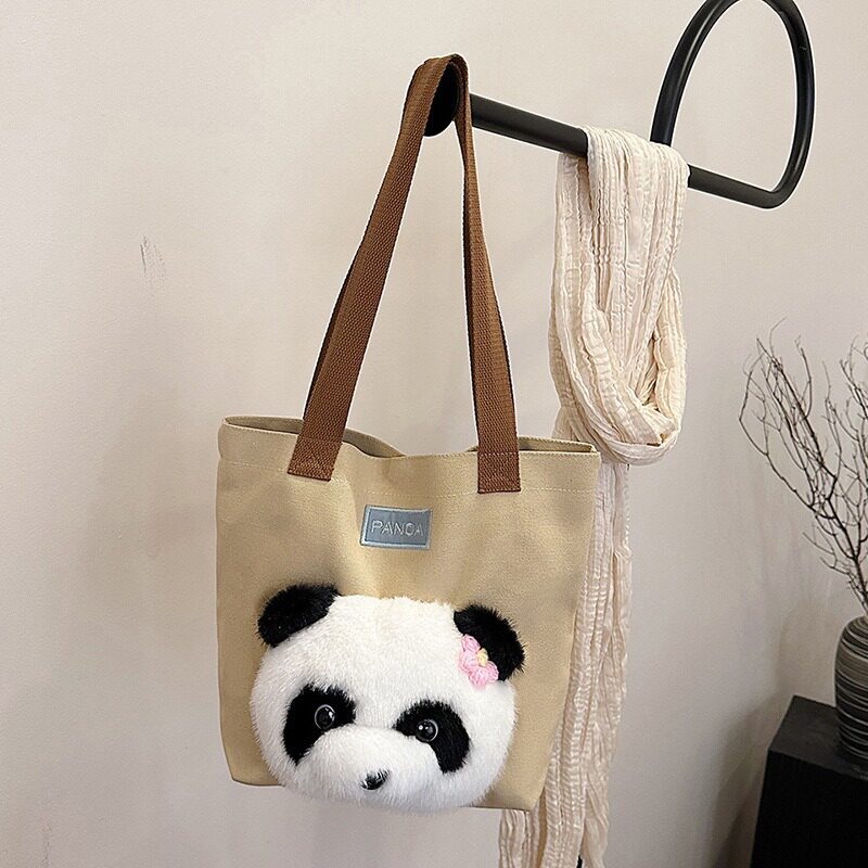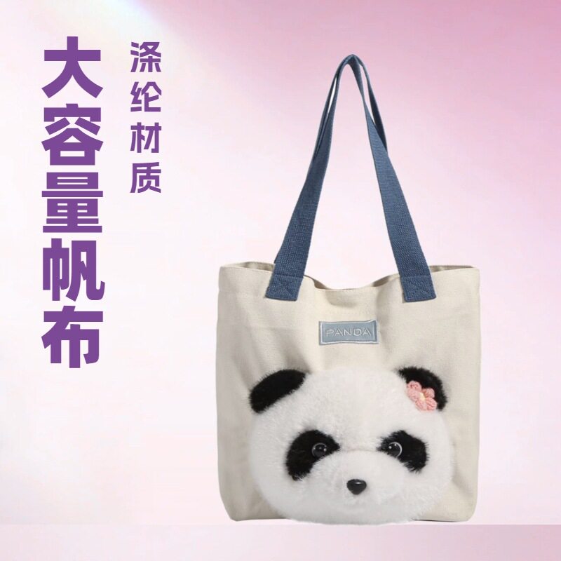 大熊猫包包2024新款 帆布包单肩包大容量托特包上课通勤斜挎包 时尚