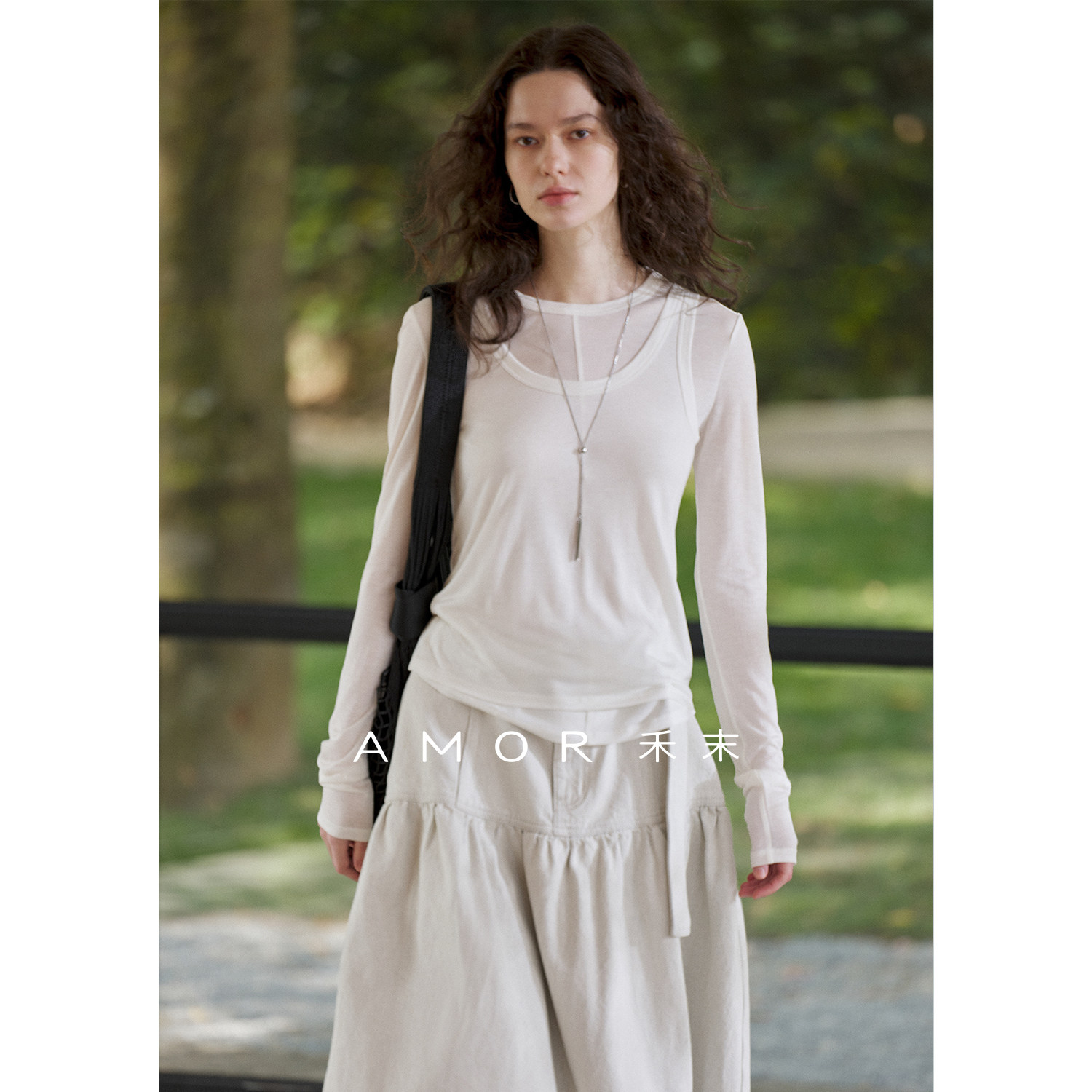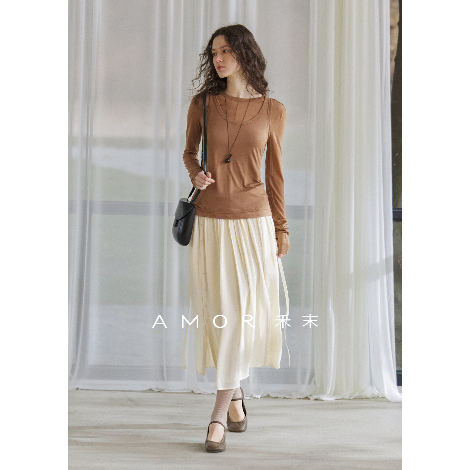 打底背心叠穿上衣两件套女 圆领长袖 AMOR禾末 醋酸莱赛尔面料修身