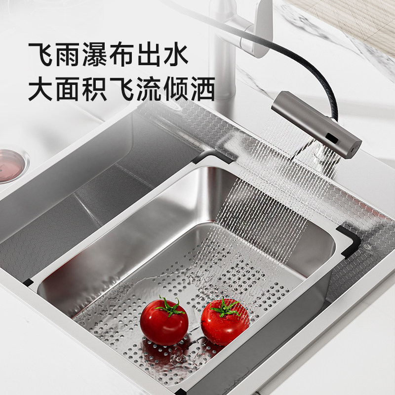 悍高厨房纳米水槽手工单槽304不锈钢灰色洗菜盆洗碗盆大单盆套餐