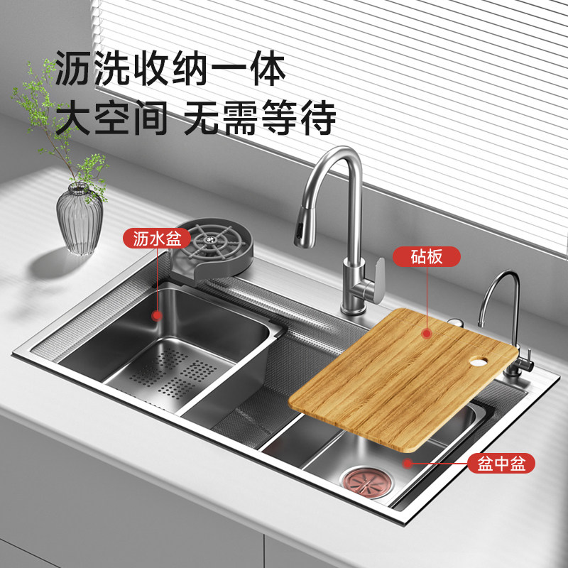 厨房不锈钢单槽一体加厚加深水槽拉丝洗菜盆家用洗碗池套餐台下盆