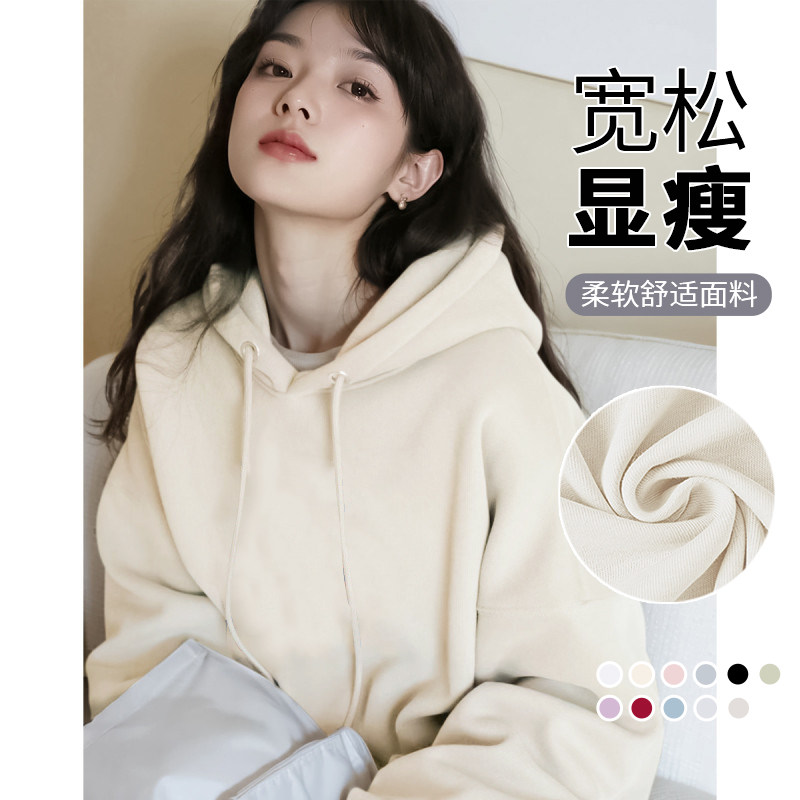 KHV真维斯灰色卫衣女连帽2025新款 宽松显瘦中学生加绒外套 春秋季