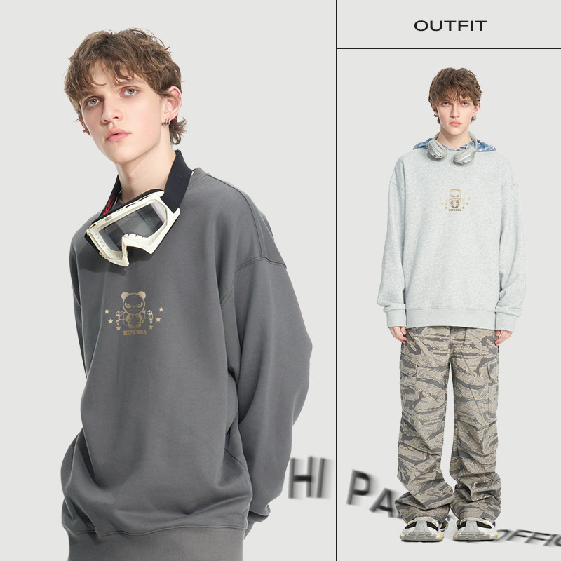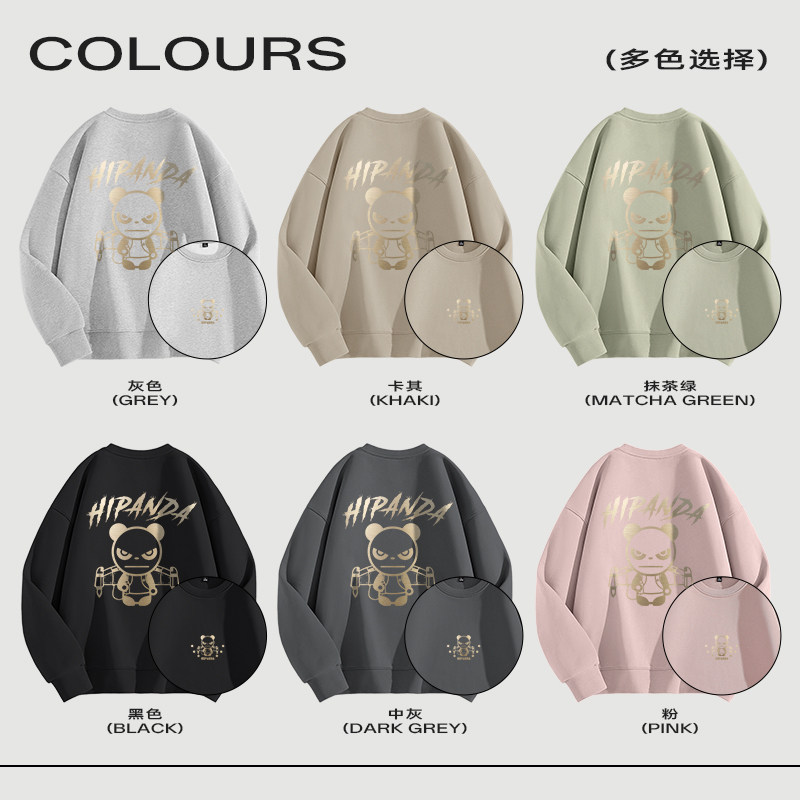 Hipanda你好熊猫黑金高级感圆领加绒卫衣潮牌情侣上衣2025冬重磅