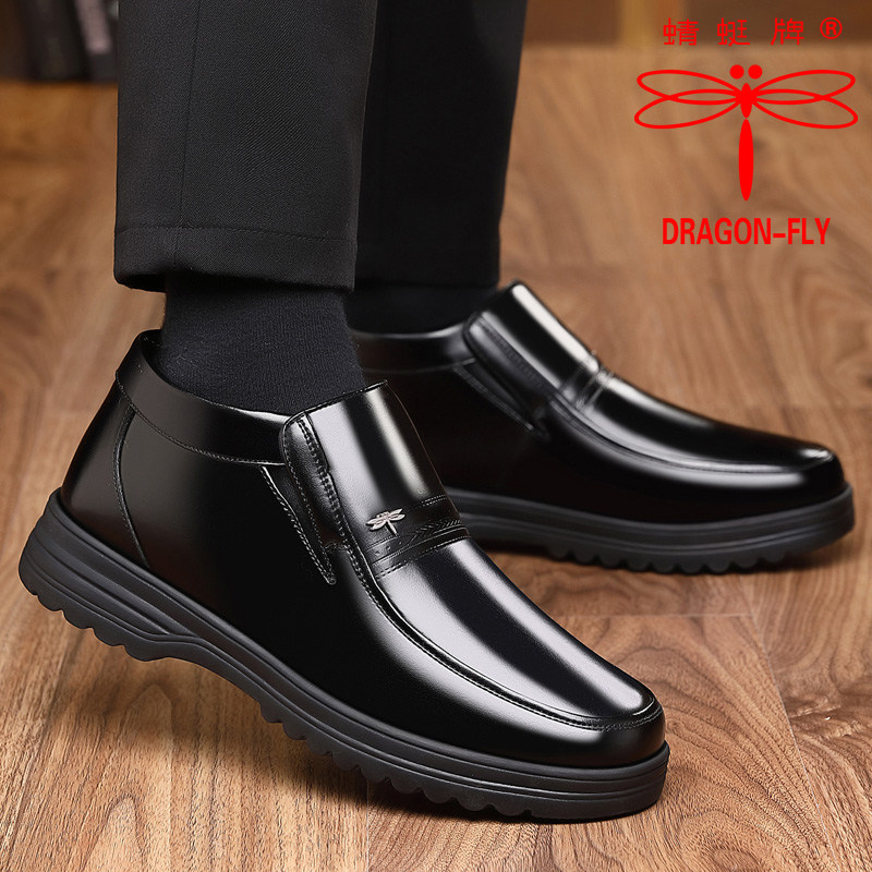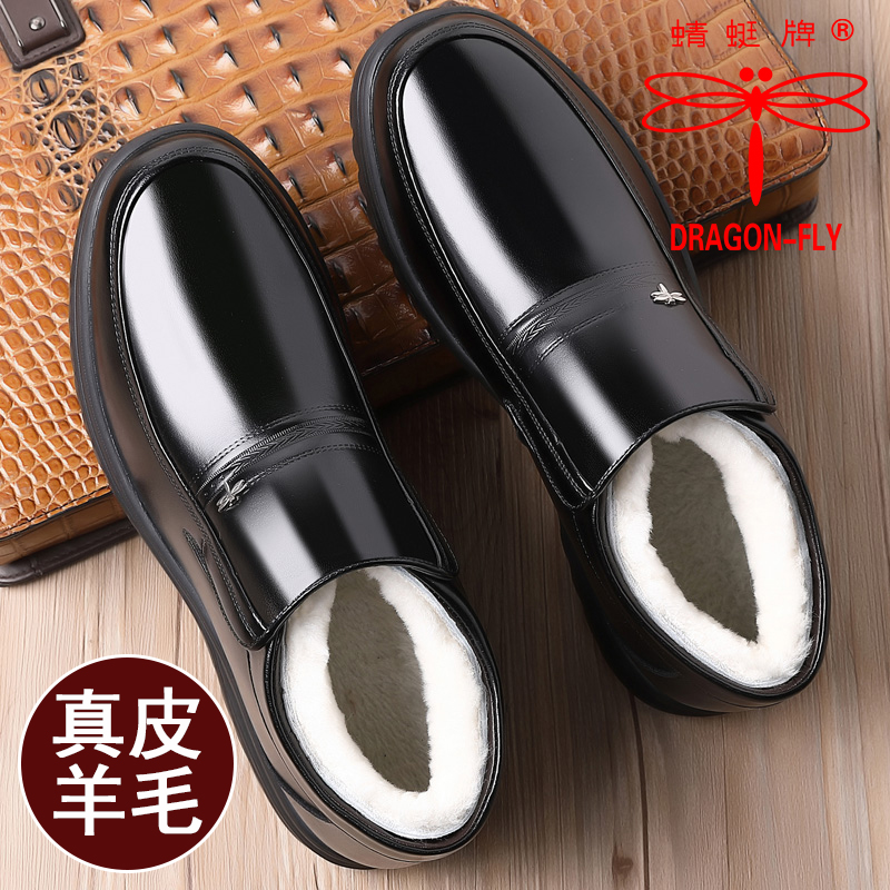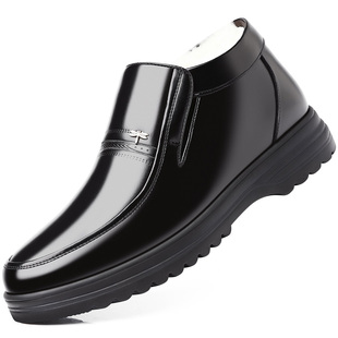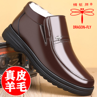 休闲老人高帮棉皮鞋 加绒保暖加厚真皮羊毛中老年爸爸鞋 男冬季 棉鞋