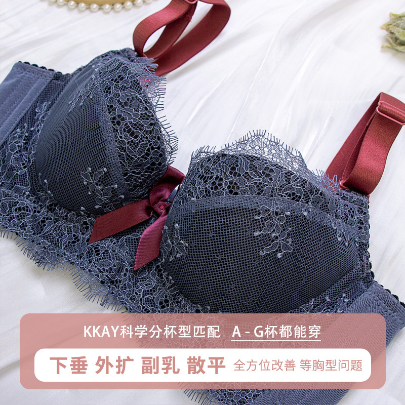 六只兔子蕾丝内衣女小胸聚拢显大性感文胸罩套装 上托防下垂收副乳