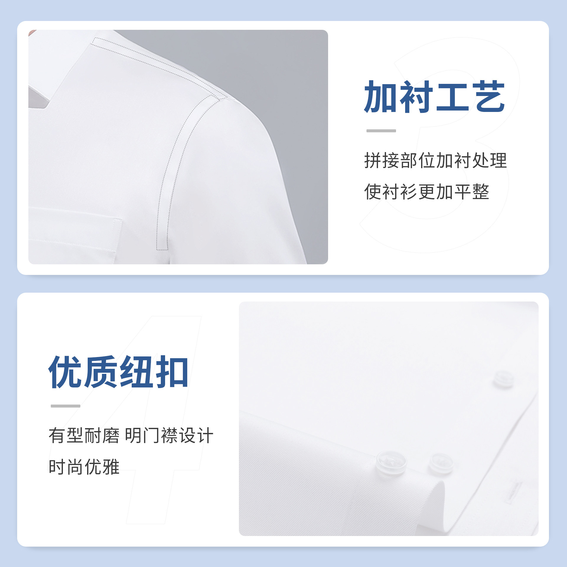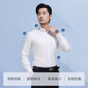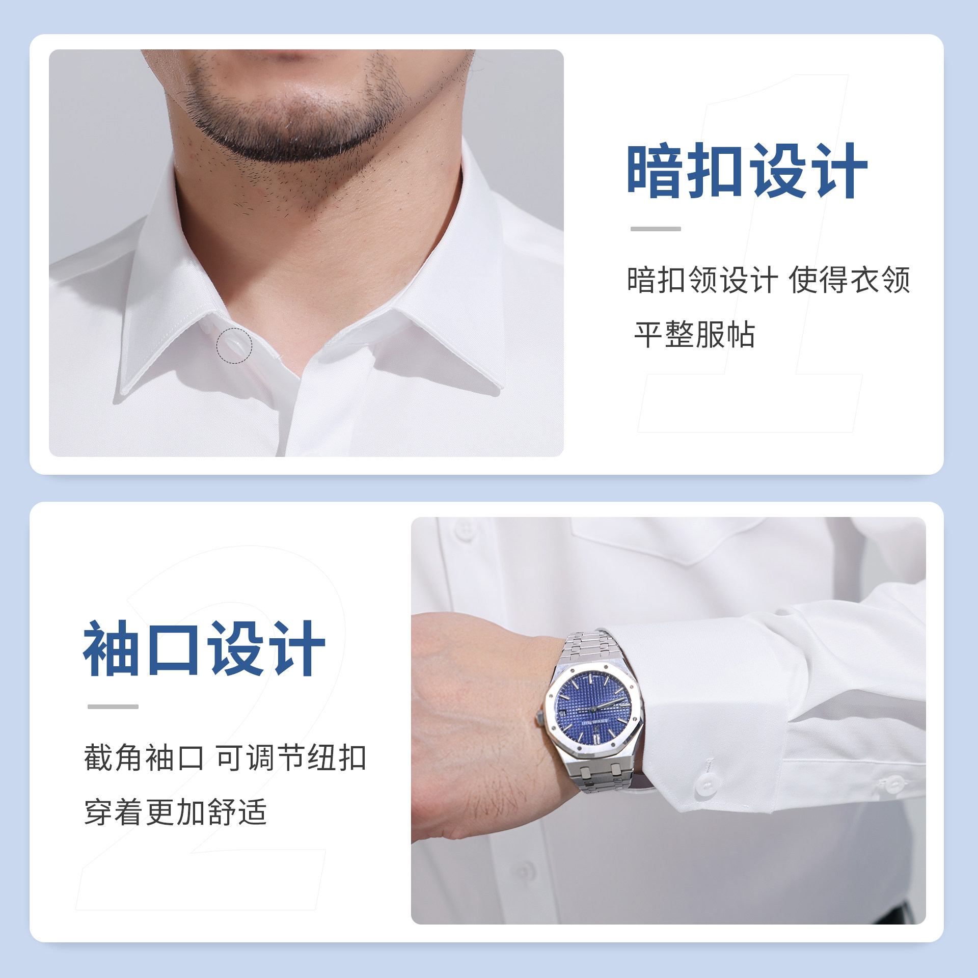 抗皱通勤口袋衬衣 白色商务正装 职定100%棉80支DP成衣免烫衬衫 男士