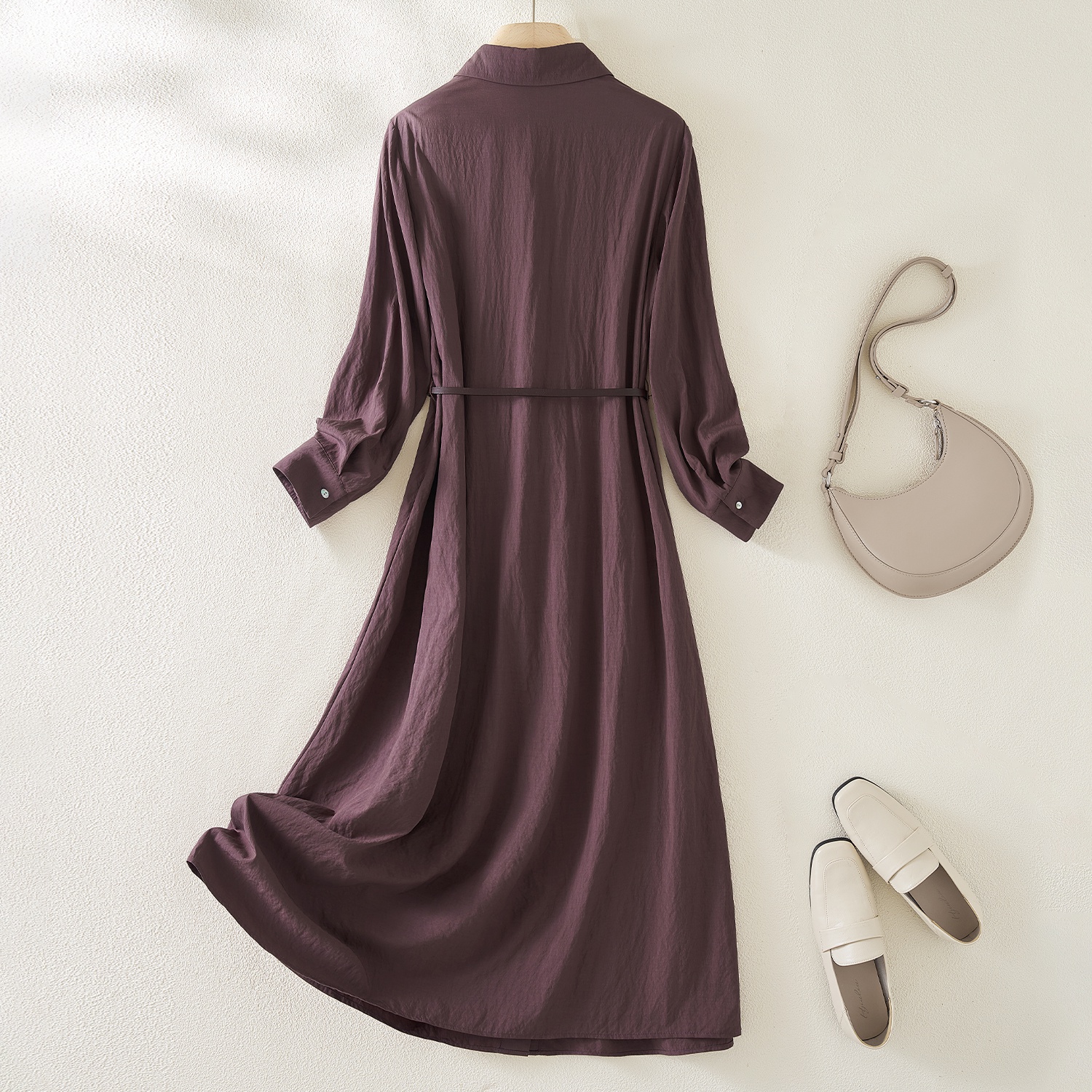 气质长裙 高级感法式 IHIMI海谧轻奢再生纤维衬衫 领连衣裙女秋季