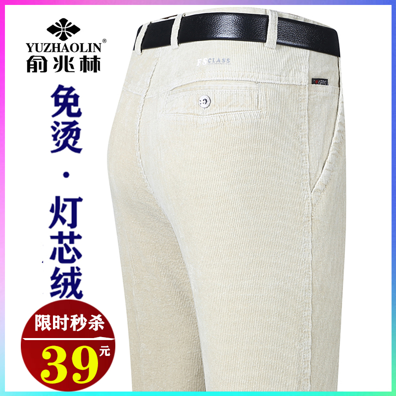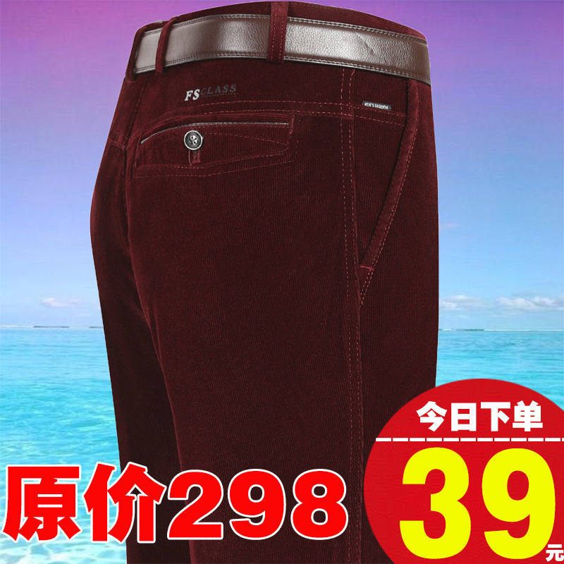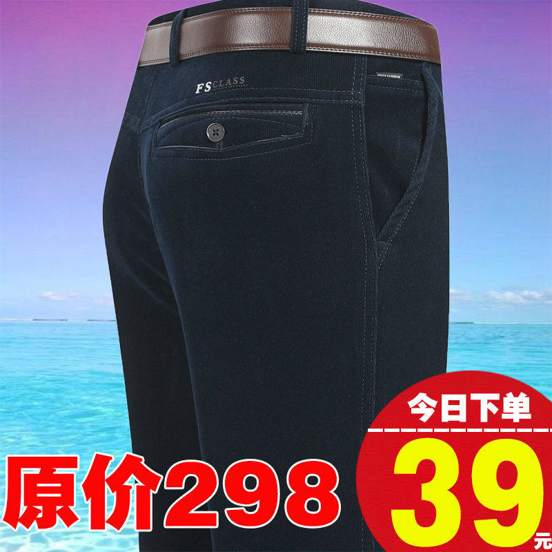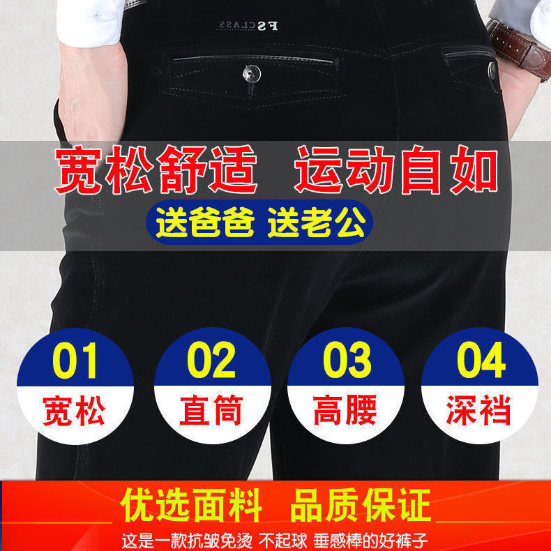 秋冬季 高腰直筒休闲裤 厚款 中老年条绒裤 男商务宽松 灯芯绒男裤 特价