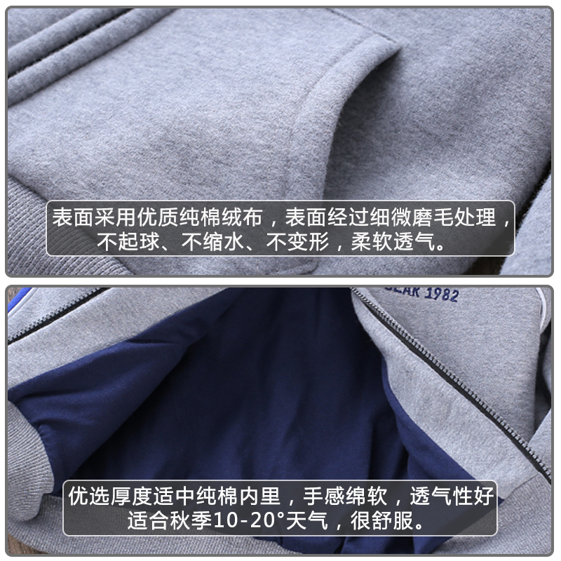 男童双层外套秋冬季 保暖中大童卫衣 加绒上衣纯棉布内里拉链衫