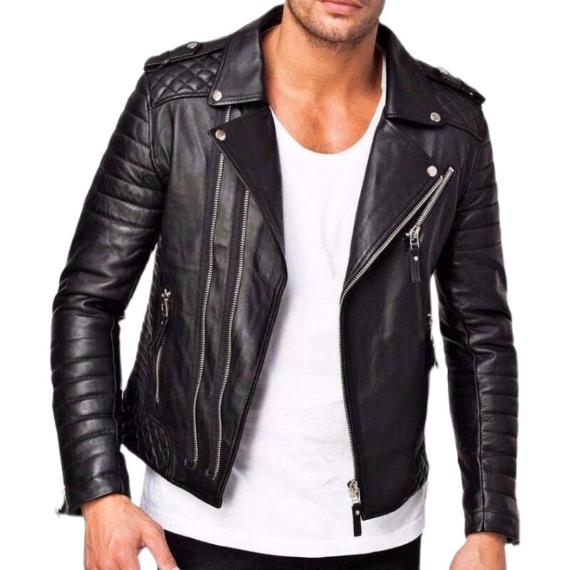 美国代购 摩托车赛车机车夹克皮衣 Biker◇手作黑色皮革羊皮男士