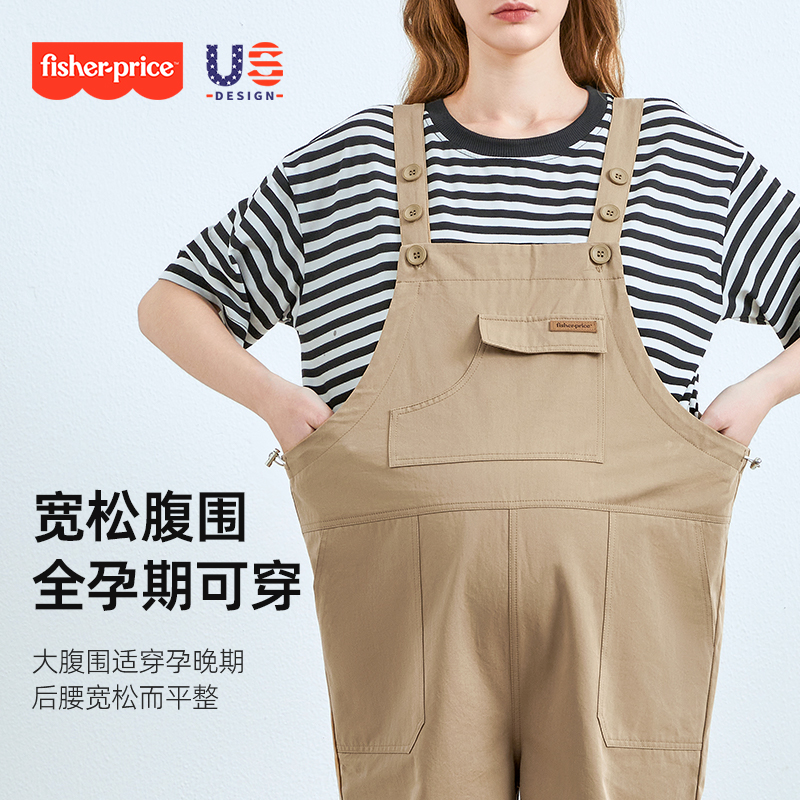 九分春秋纯棉套装 费雪孕妇背带裤 外穿休闲宽松大码 新款 2025春夏季