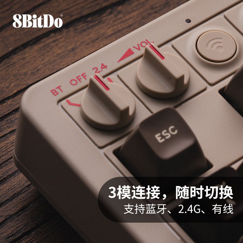 游戏办公台式 无线蓝牙有线3模连接87键带超级按键摇杆 笔记本电脑通用送腕托 C64复古机械键盘 八位堂Retro87