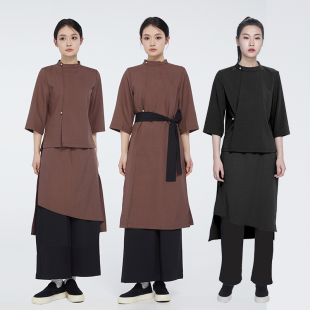 爱斯坦高档中餐厅私房菜酒楼服务员工作服迎宾服新中式 餐饮工作服