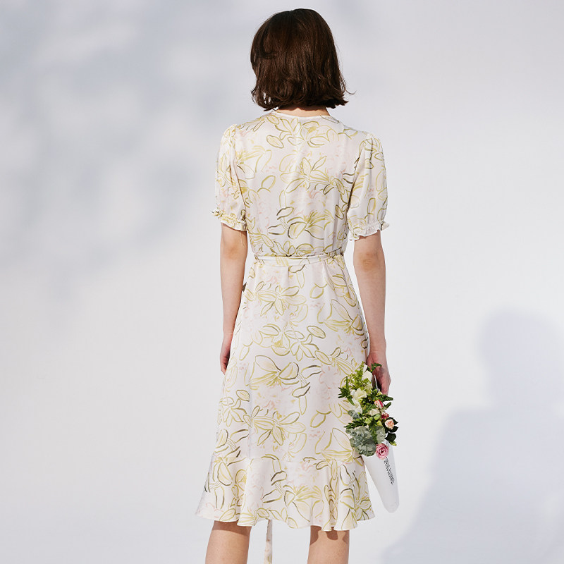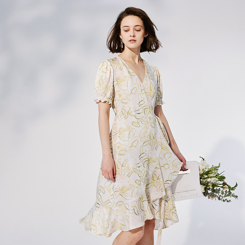 新款 印花连衣裙朗黛夏季 MYMO法式 醋酸荷叶边裙196M 商场同款