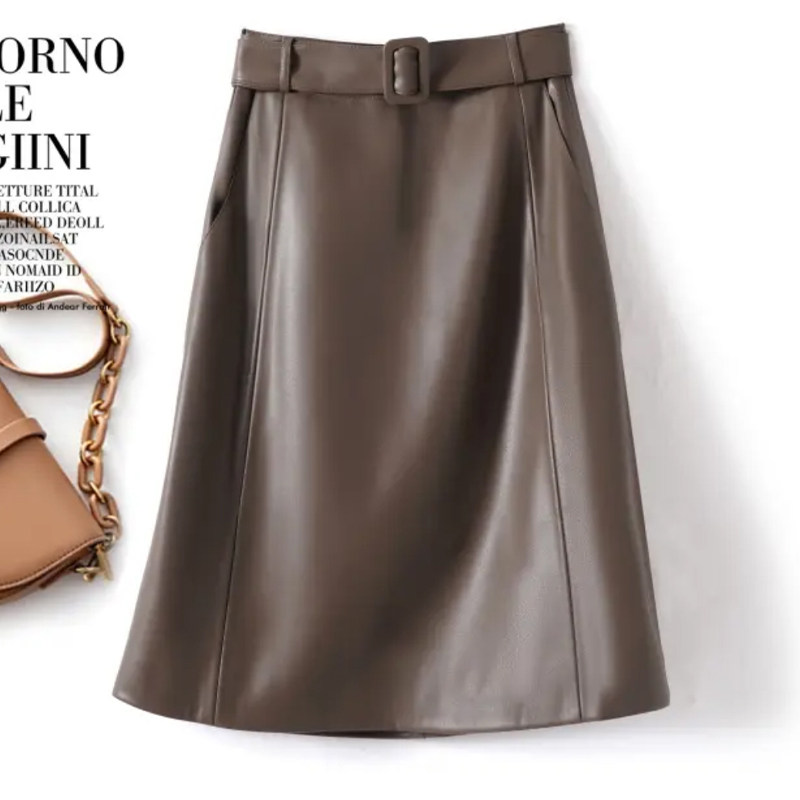 海宁真皮皮裙女绵羊皮短裙2025秋季 高腰显瘦百搭A字裙包臀裙 新款