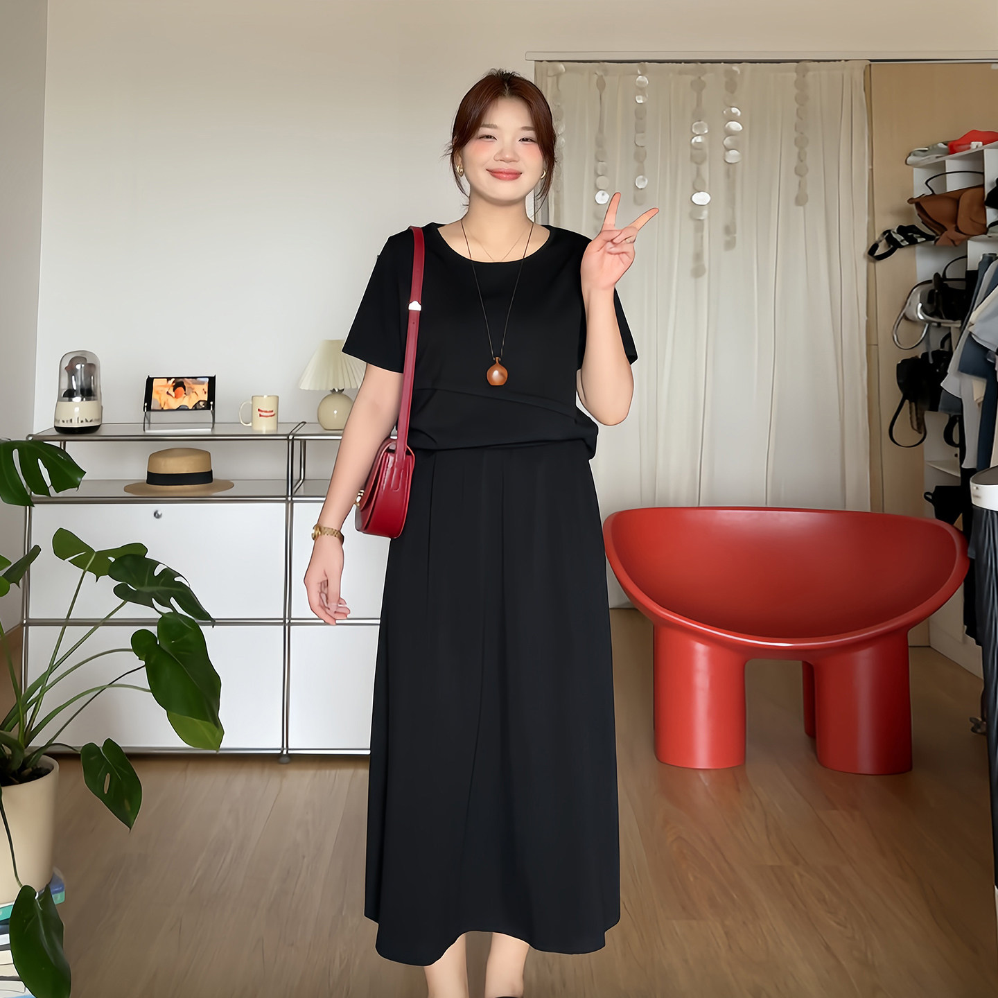 喵喵大码 两件套装 女装 显瘦上衣半身裙巨好看 5123 胖mm夏装 微胖