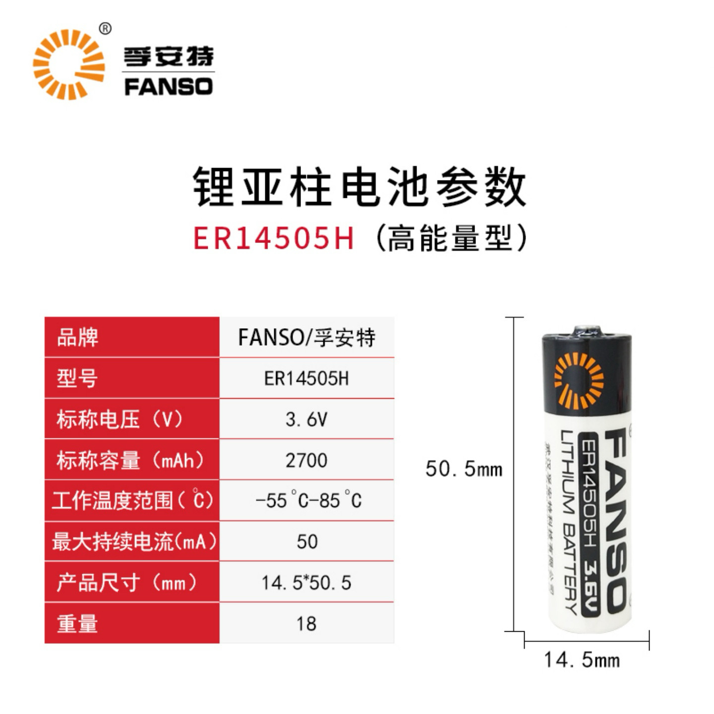 FANSO孚安特ER14505H适用于厨房天然气探测h10翼捷燃气报警器电池